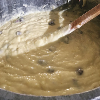 Ella hizo un crumble para ponerle arriba: unir 60 gr de manteca con 30 gr de así cae blanca y 30 gr de azúcar negra. Luego agregar 125 gr de harina y 1 cda de esencia de vainilla. Formar una masa compacta y llevar media hora a la heladera. Desmenuzar en grumos arriba de la mezcla luego de ponerla en el molde (si no queres no es necesario el crumble)