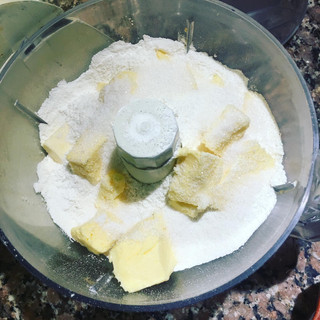 Procesar todos los ingredientes en la procesadora. Luego agregarle 1 huevo y 1 yema y seguir procesando. La sacas de la procesadora y la llevas a la heladera por 20 minutos enfilmada en lo posible. La sacas, la amasas y la pones en la tartera enharinada y enmantecada y llevala a horno por 15 minutos con peso arriba (pueden ser porotos sobre aluminio).